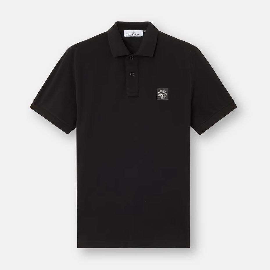 Short sleeve polo shirt in 95% organic cotton / 5% elastane piqué. Ribbed collar with two-button fastening. Stone Island Compass logo patch on chest. Ribbed sleeve edge. Bottom slit on sides. Slim fit.