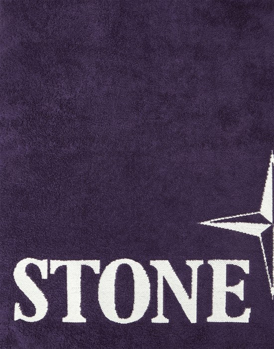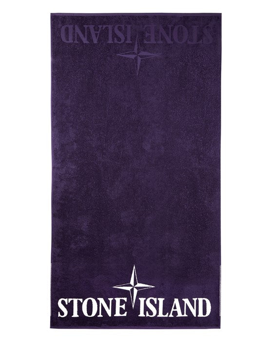 Large woven and embroidered Stone Island logo at one end, large woven Stone Island logo on the other end. Beach towel in cotton terry